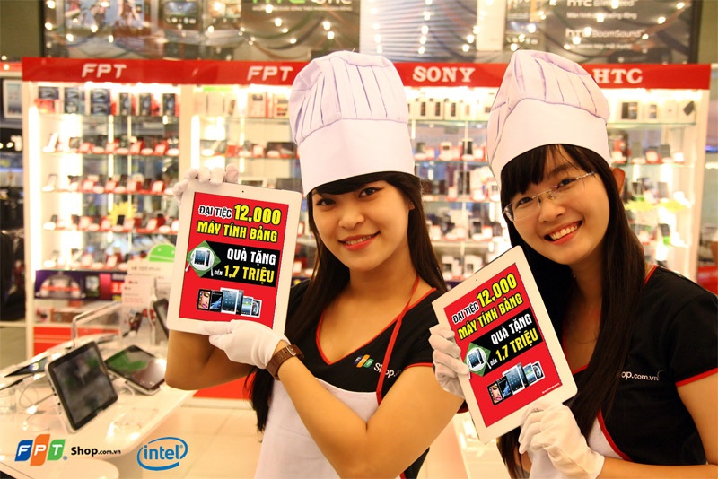 - Khi mua máy tính bảng có giá trên 8.000.000 đồng, khách hàng được chọn một trong 2 gói quà tặng là dịch vụ trang trí máy tính bảng cao cấp và SIM 3G tài khoản 1.200.000 đồng (máy tính bảng có 3G) hoặc SIM thoại tài khoản 750.000 đồng (máy tính bảng Wi-Fi); hoặc được tài trợ 65% chi phí gói “Bảo hành vàng - vào nước, rơi vỡ… vẫn được đổi mới” lên đến 18 tháng (mức bảo hành vàng thông thường chỉ 12 tháng).