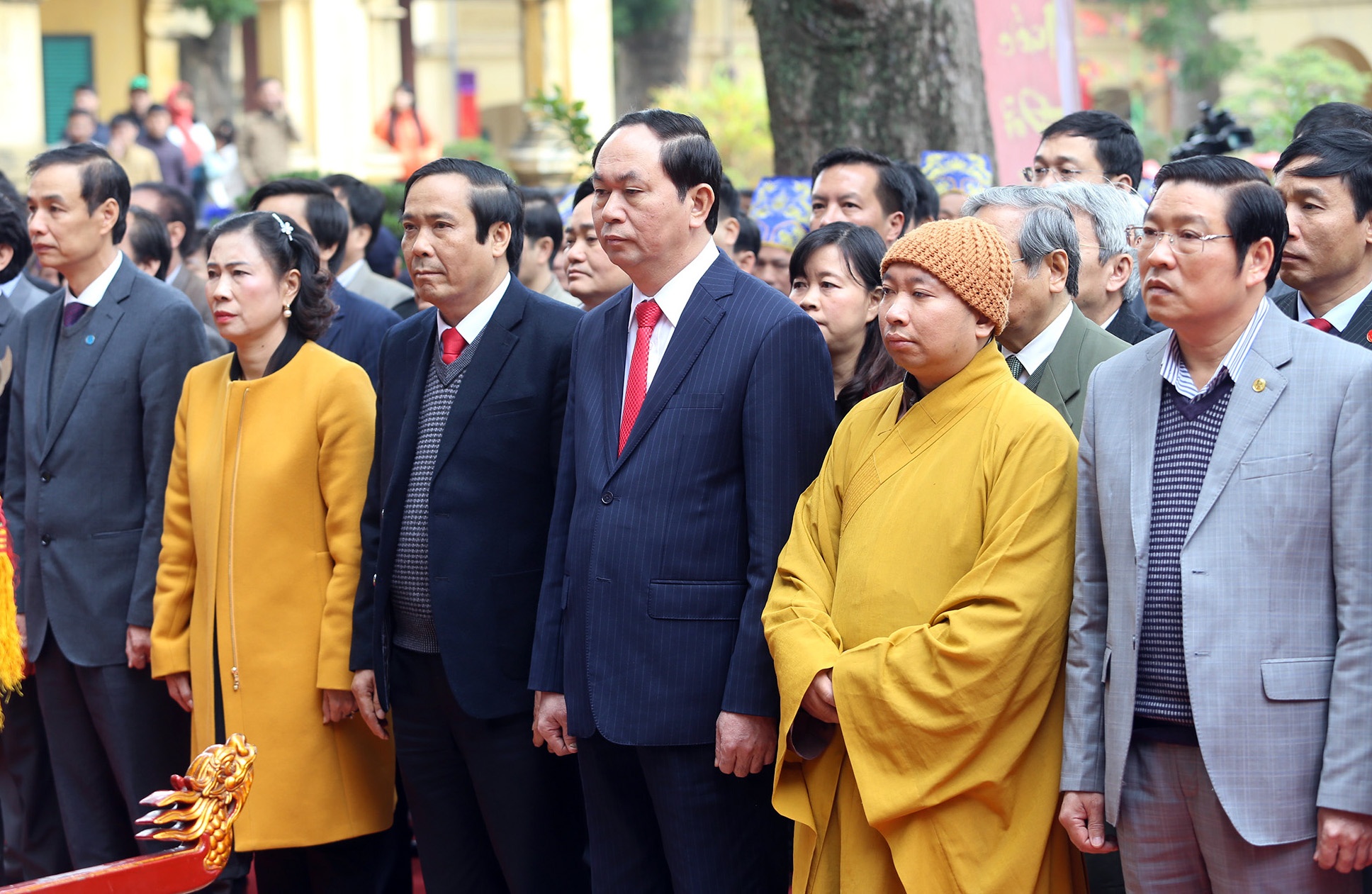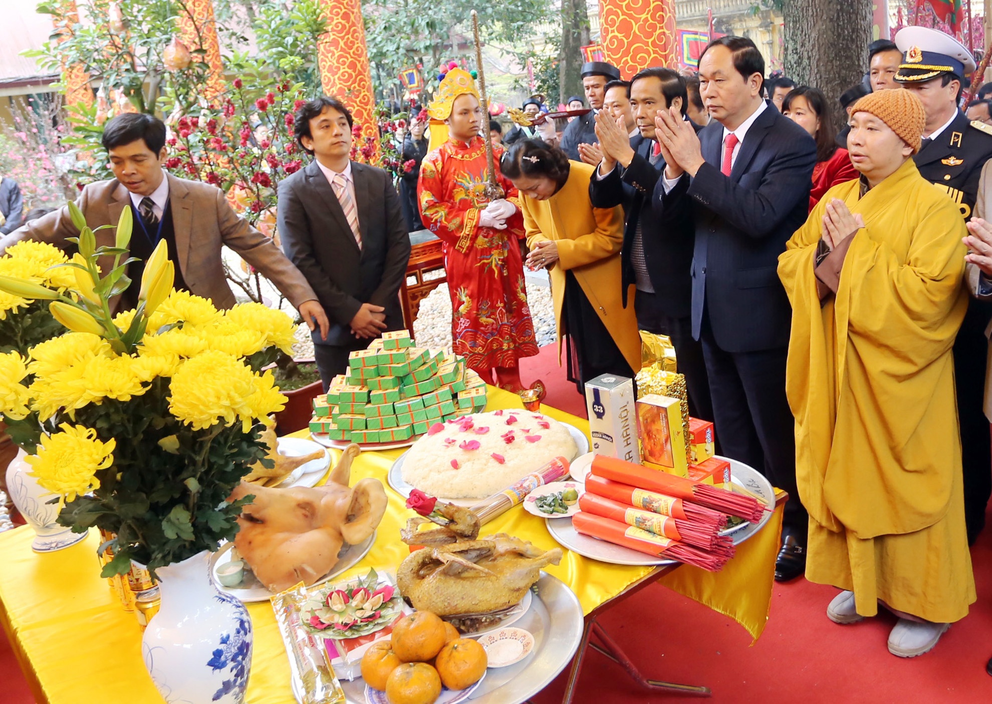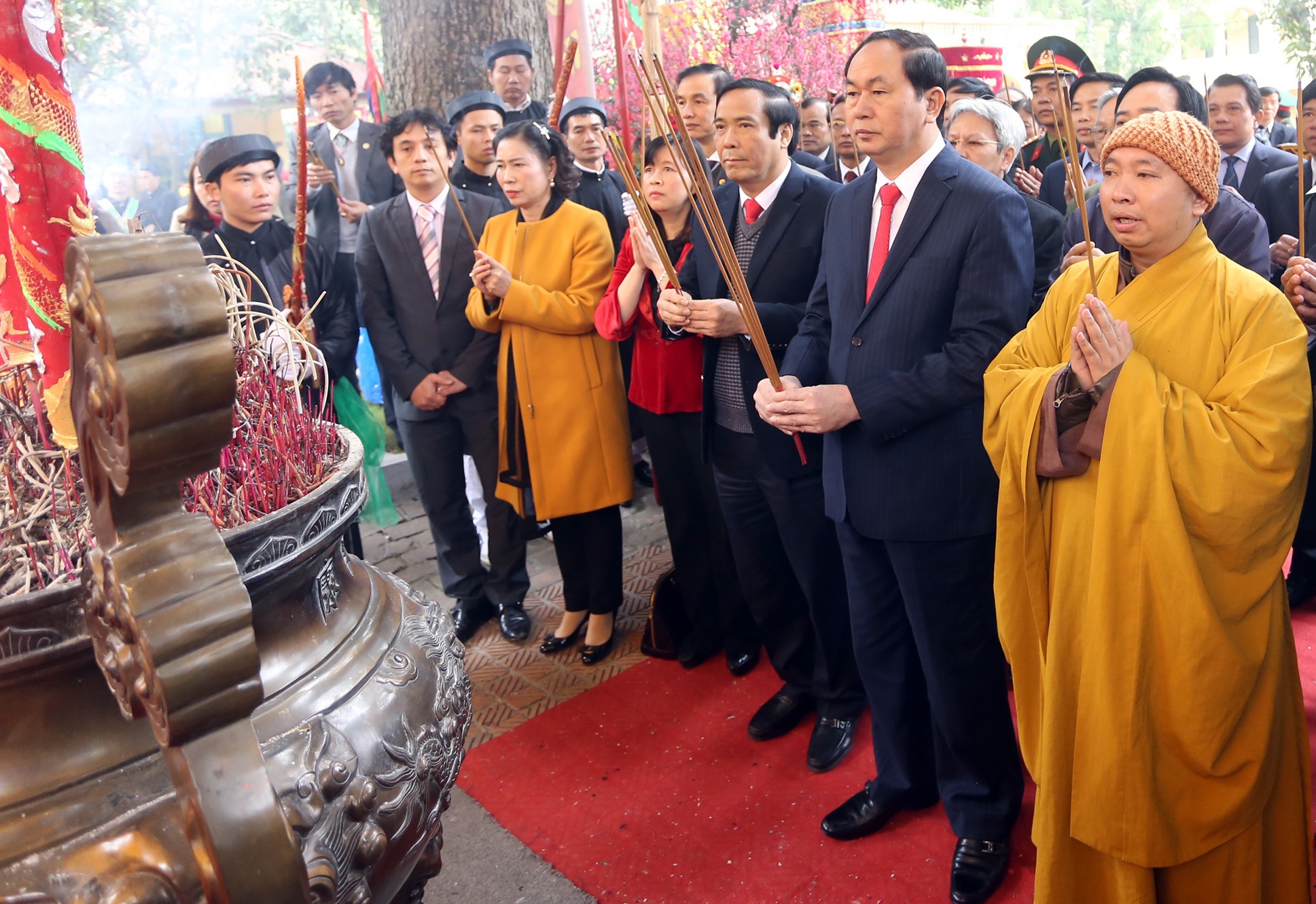 Ông dâng hương tưởng nhớ các bậc tiên liệt, các đức vua và bậc hiền tài có công với đất nước. |