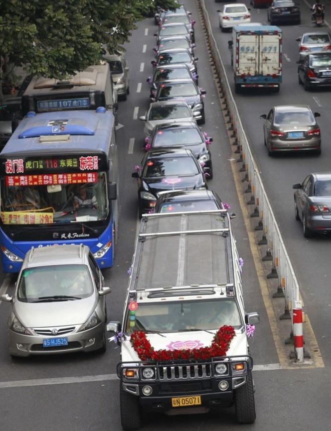 | Theo Shanghaiist, một lễ cưới với toàn siêu xe vừa diễn ra vào hôm thứ 7 tuần trước trên đường phố Đông Quan, Trung Quốc khiến người xem không khỏi choáng váng. |