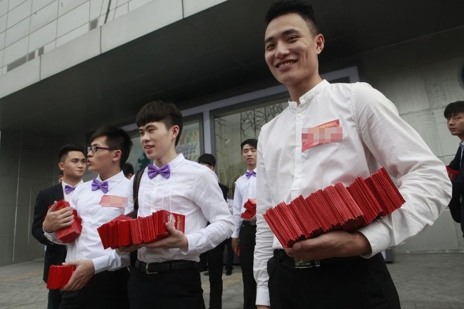 | Đội ngũ trẻ làm việc hết sức chuyên nghiệp. Tổng cộng có đến 40.000 hồng bao được phát ra một cách ngẫu nhiên, với mệnh giá từ 1 đến 100 nhân dân tệ. Trang Sina cho hay, đã có người đi đường tỏ ra bất ngờ và nhảy lên vui sướng khi may mắn nhận được phong bao bên trong có 100 nhân dân tệ. |