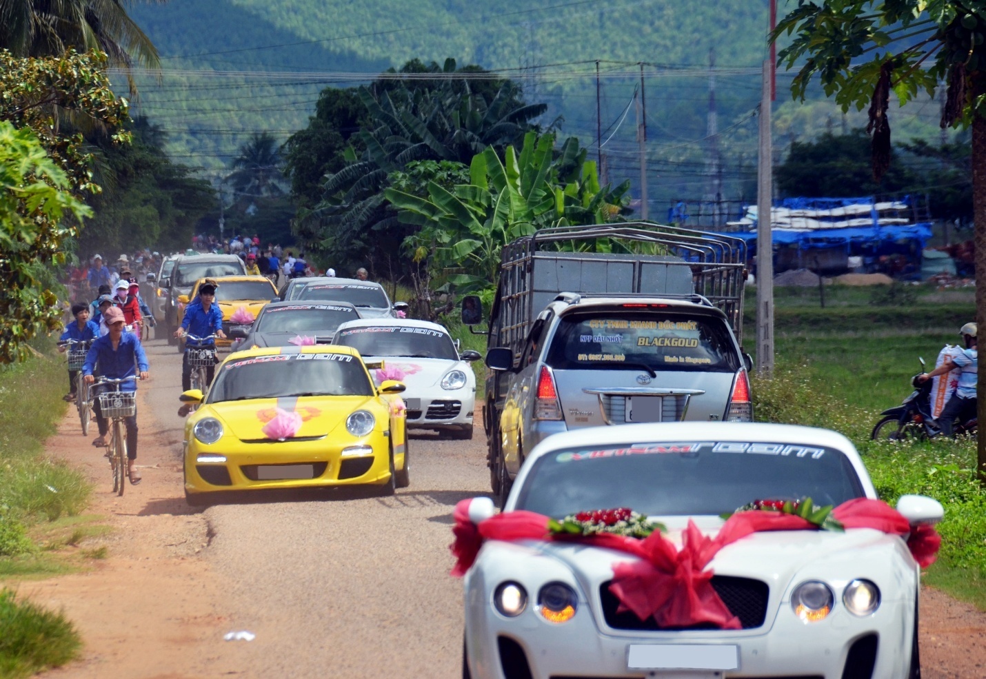 Một đám cưới thế kỷ trước rước dâu bằng xe đạp, xe máy; cô dâu mặc áo dài truyền thống, ôm bó hoa trắng; có chụp hình, liên hoan bánh, kẹo, thuốc lá, bao bạc, đầu lọc đã là sang trọng. Nay phải là ô tô xịn, quay camera, chụp hình, cô dâu thay váy áo nhiều lần, tiệc đãi ở khách sạn sang trọng...