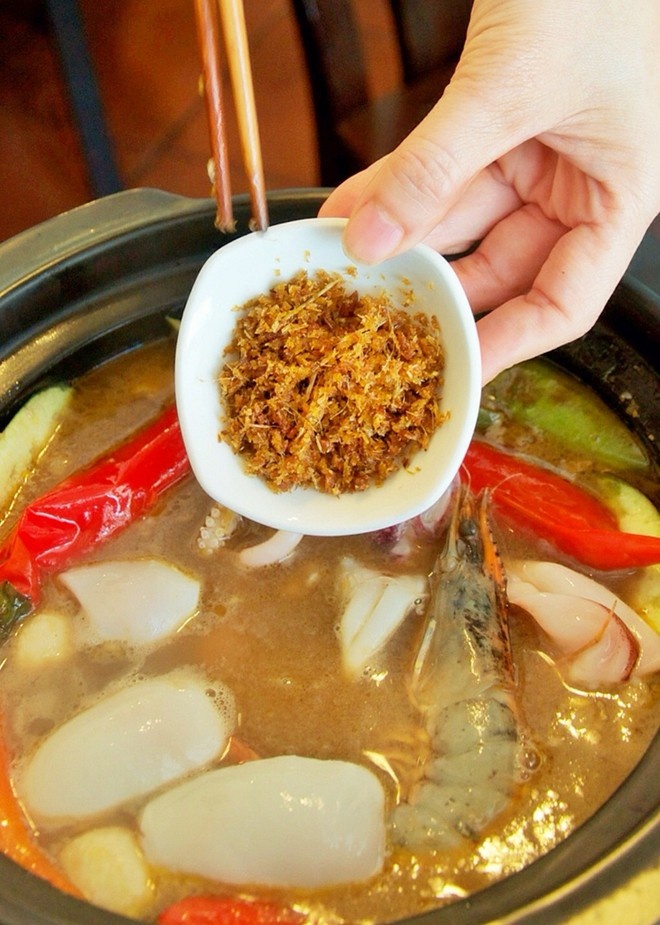 | Sả và ớt là hai gia vị không thể thiếu của mắm kho. Bạn có thể cho chúng vào khi nấu hay khi thưởng thức đều được. Ảnh: Lẩu mắm Quán Vy |