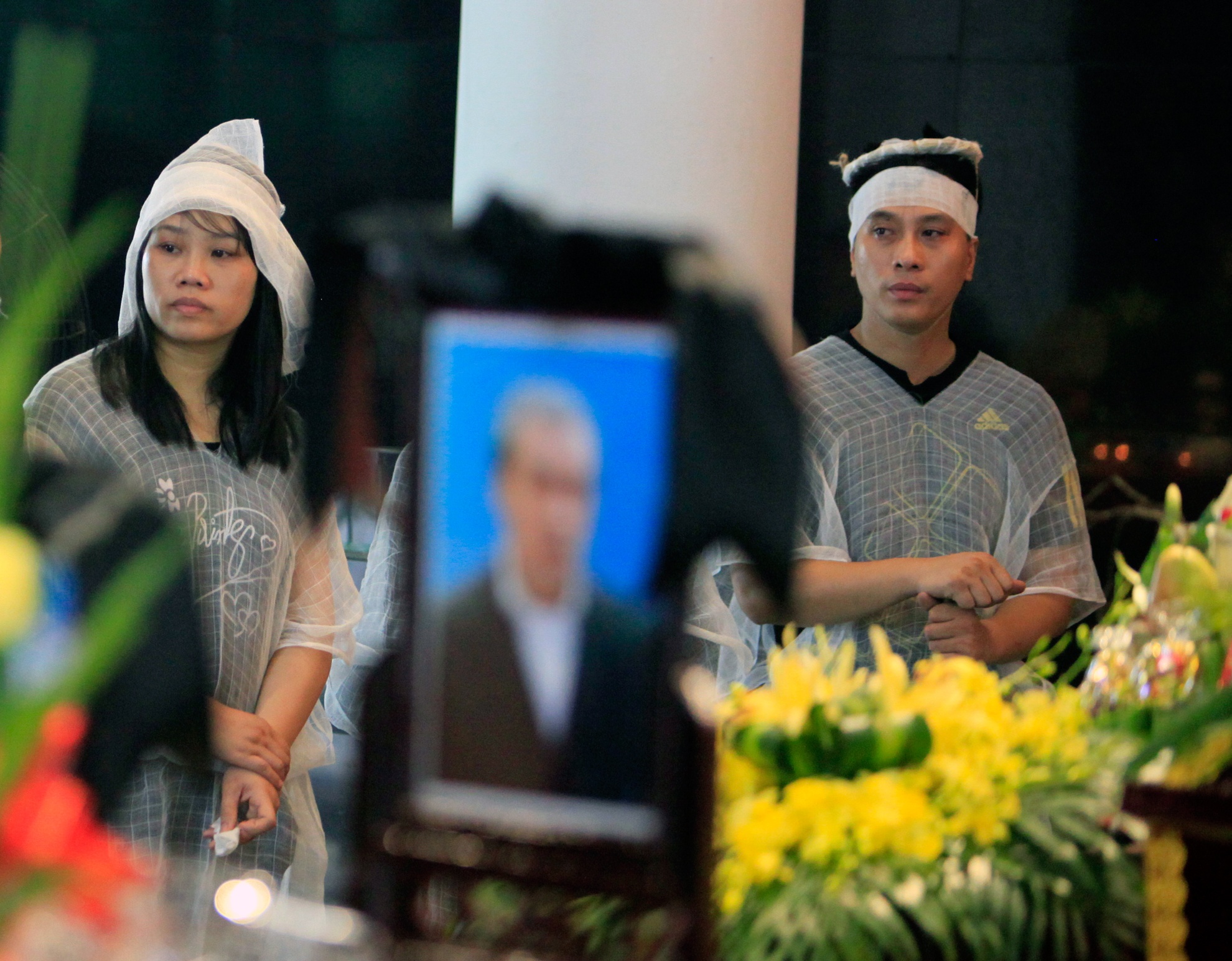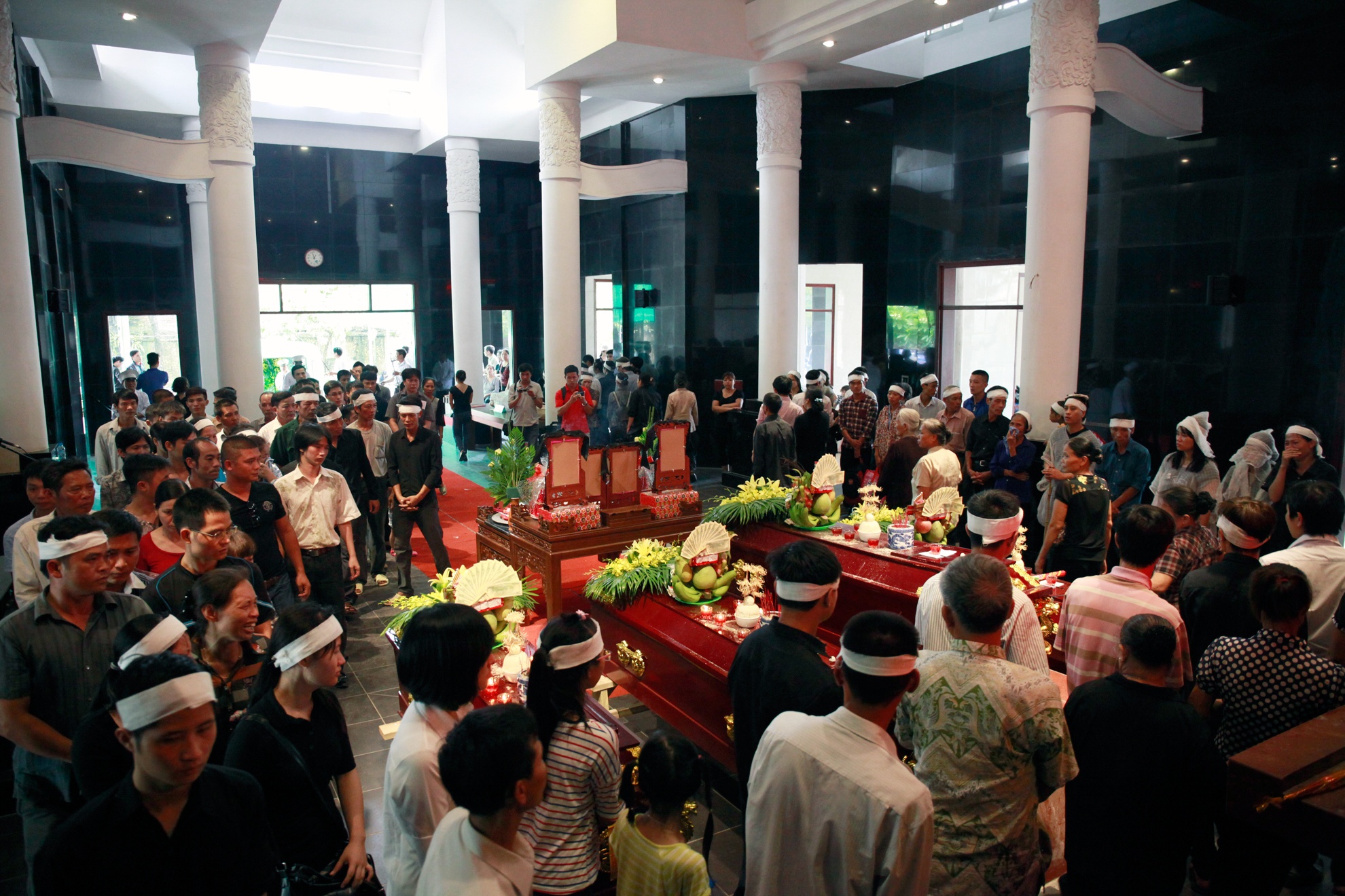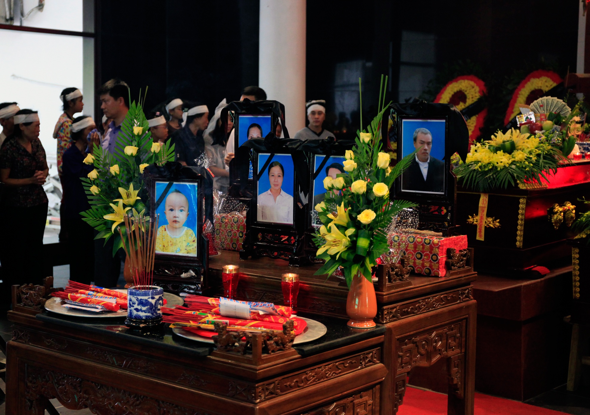 | Lễ viếng bắt đầu từ 11h tại nhà tang lễ bệnh viện Thanh Nhàn, 4 cỗ áo quan của vợ chồng ông Sơn, bà Lý cùng con trai và con dâu được xếp đặt cạnh nhau. Còn tang lễ của cháu bé 8 tháng Nguyễn Duy Hưng sẽ được tổ chức vào ngày mai (13/6).
