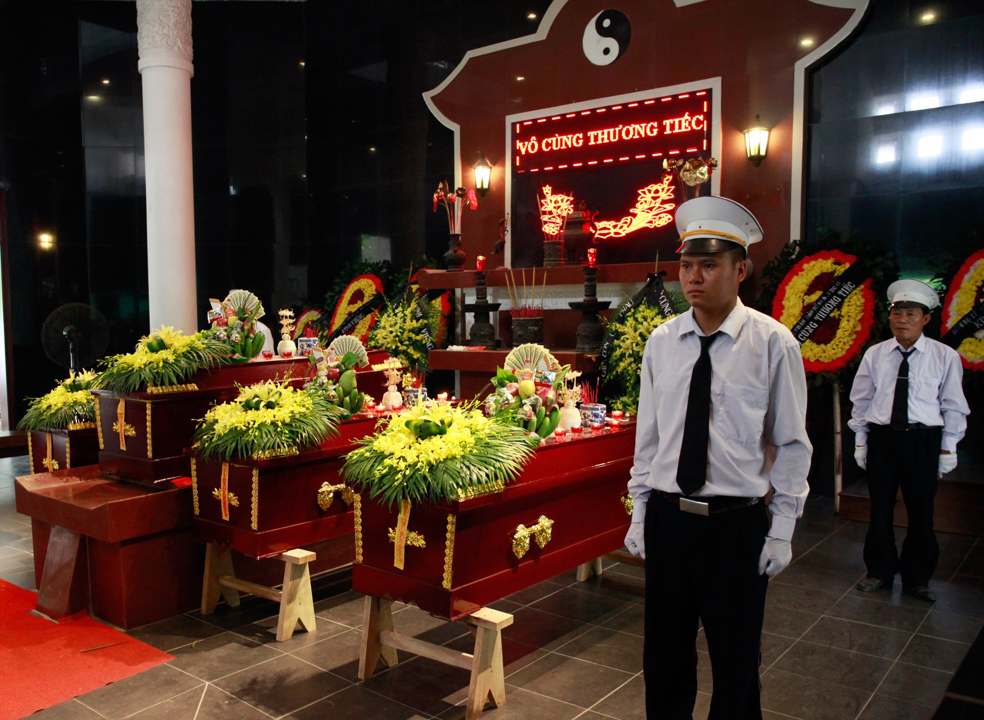 | Người thân, bạn bè, hàng xóm chậm rãi chào tạm biệt, nhìn các nạn nhân lần cuối. |