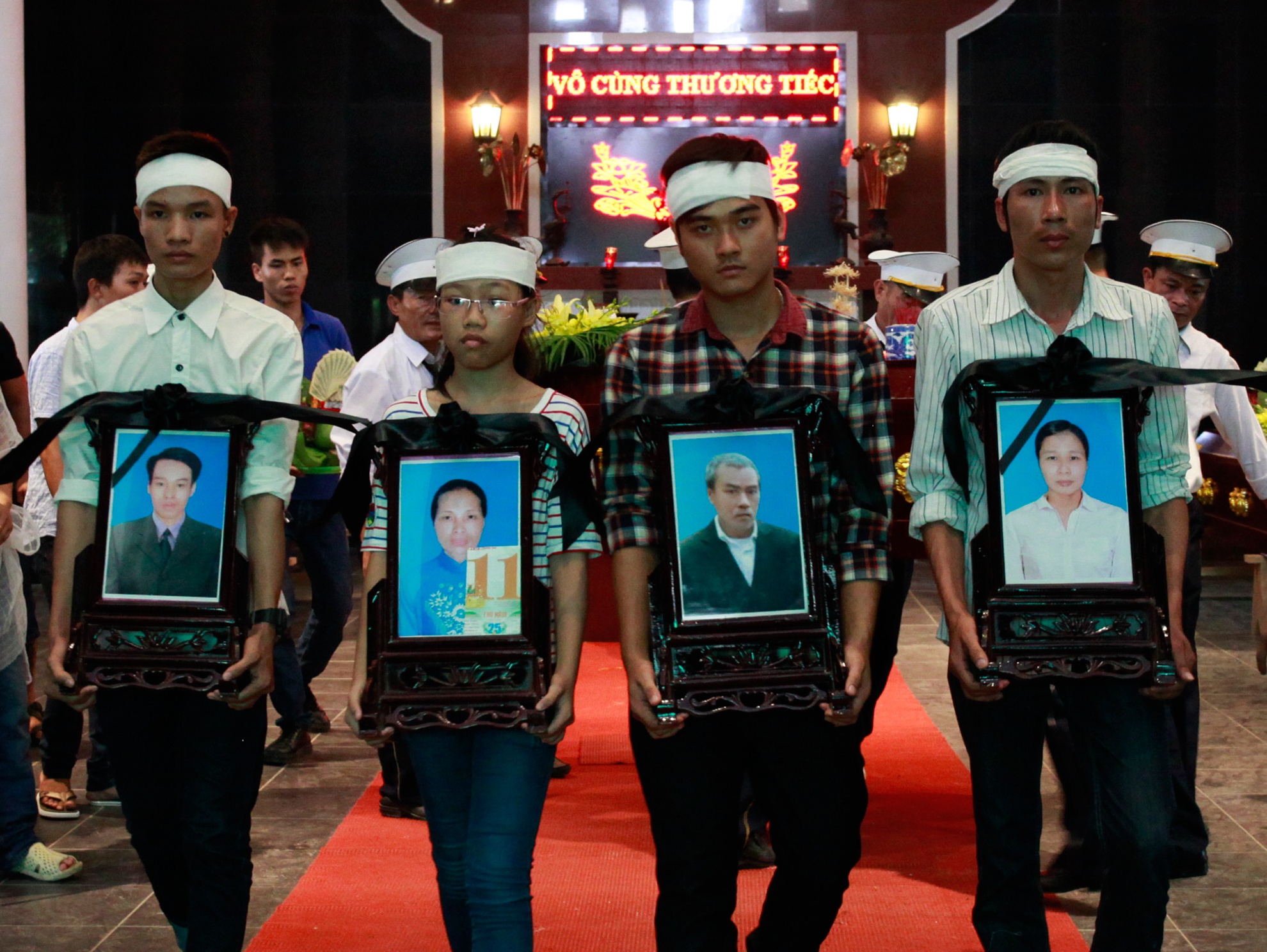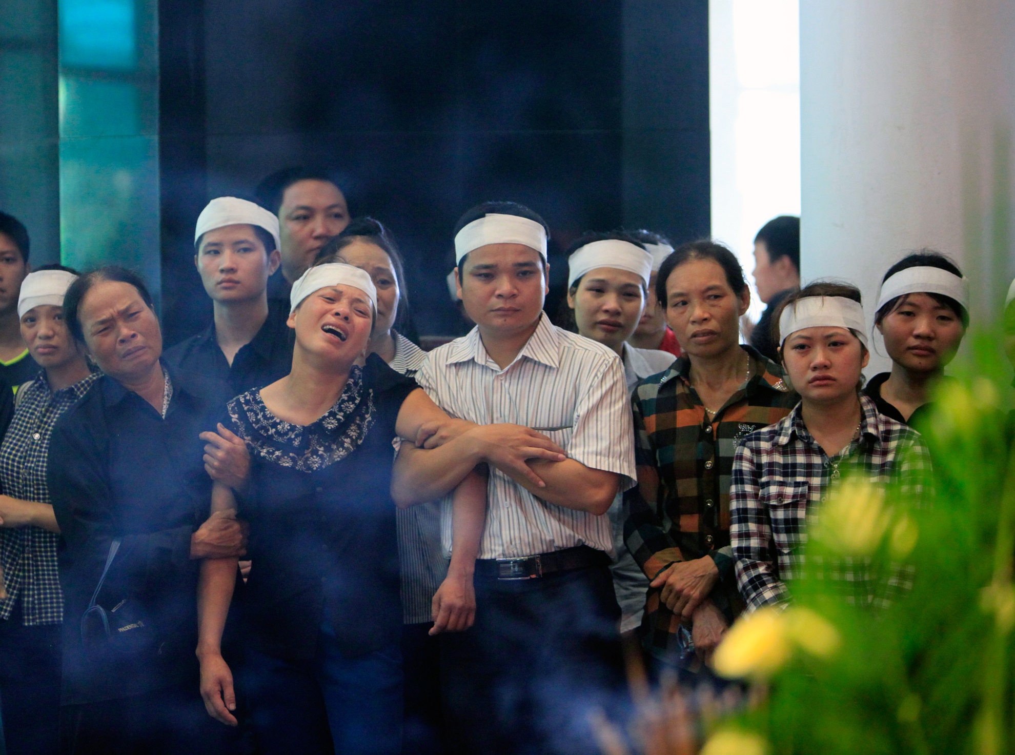 | Bạn bè, họ hàng không kìm nổi nước mắt khi nhìn di ảnh các nạn nhân.