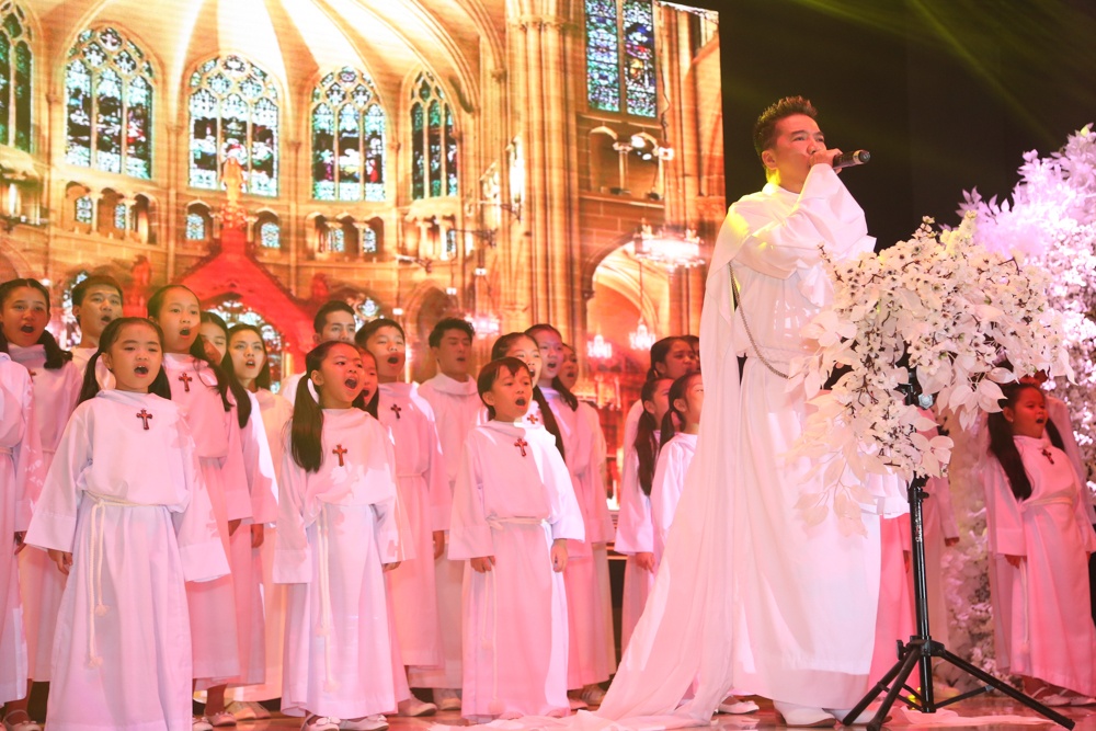 | Trong liveshow, lần đầu tiên, Mr Đàm giới thiệu với khán giả một số bài hát trong album Thánh ca. Biểu diễn cùng 40 em nhỏ cùng mặc áo dòng màu trắng, Đàm Vĩnh Hưng khiến đồng nghiệp nể vì độ chịu chơi trong âm nhạc. |