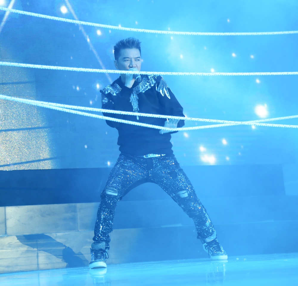 | Ông hoàng nhạc Việt "cháy" hết mình trên sân khấu. |