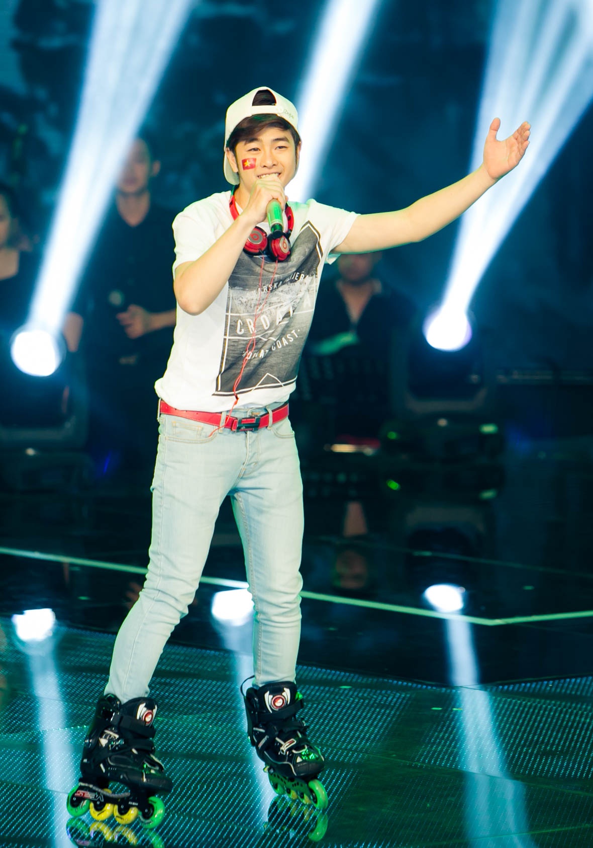 | So với những đêm thi trước, Loki Bảo Long khá mờ nhạt khi hát My kool Việt Nam nhưng lại bị phân tâm bởi màn trượt patin trên sân khấu. |