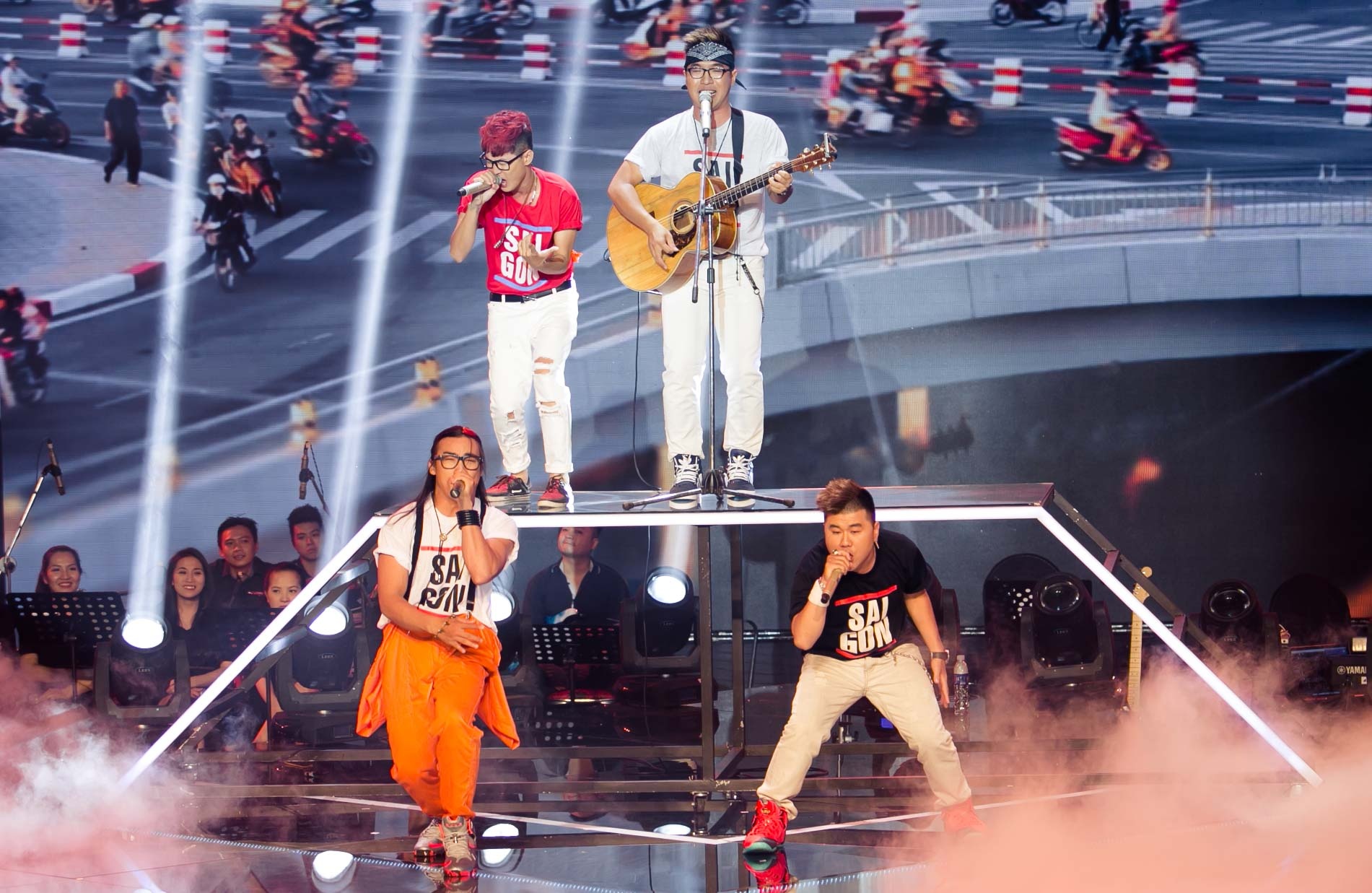 | Nhóm F Band tiếp tục chứng tỏ bản lĩnh của mình với bản mash up La La Sài Gòn. Dù trải qua nhiều đêm thi, nhưng F Band không đánh mất đi bản sắc vốn có là sự sôi động, dễ thương pha chút tinh nghịch, độc đáo. Đàm Vĩnh Hưng không tiếc lời ngợi khen, ở Việt Nam chỉ có duy nhất một nhóm nhạc như F Band. |