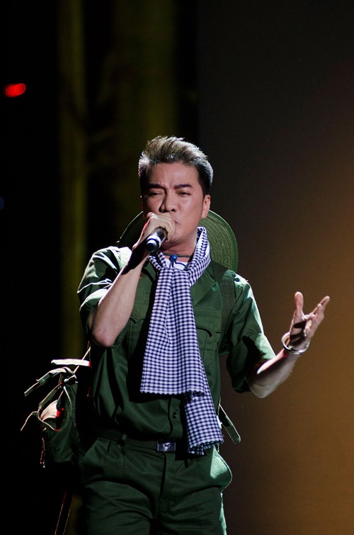 | Hình ảnh chú bộ đội của Đàm Vĩnh Hưng khiến rất nhiều khán giả xúc động. Đó chính là lý do khiến ca khúc Chiếc vòng cầu hôn của anh càng thành công hơn ở sân chơi BHYT. |