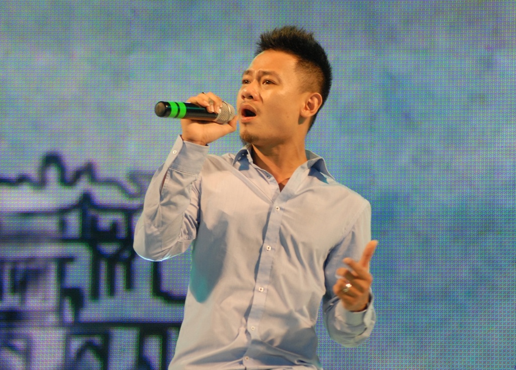 | Nhạc sĩ Nguyễn Đức Cường thể hiện một ca khúc trong chương trình. |