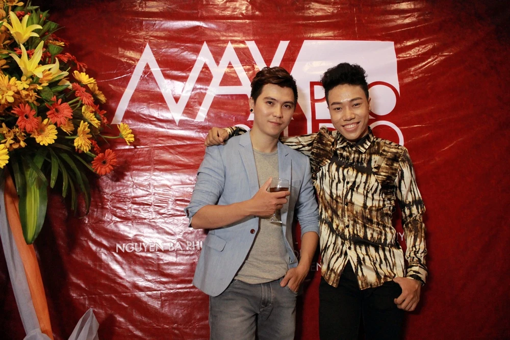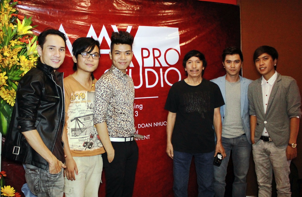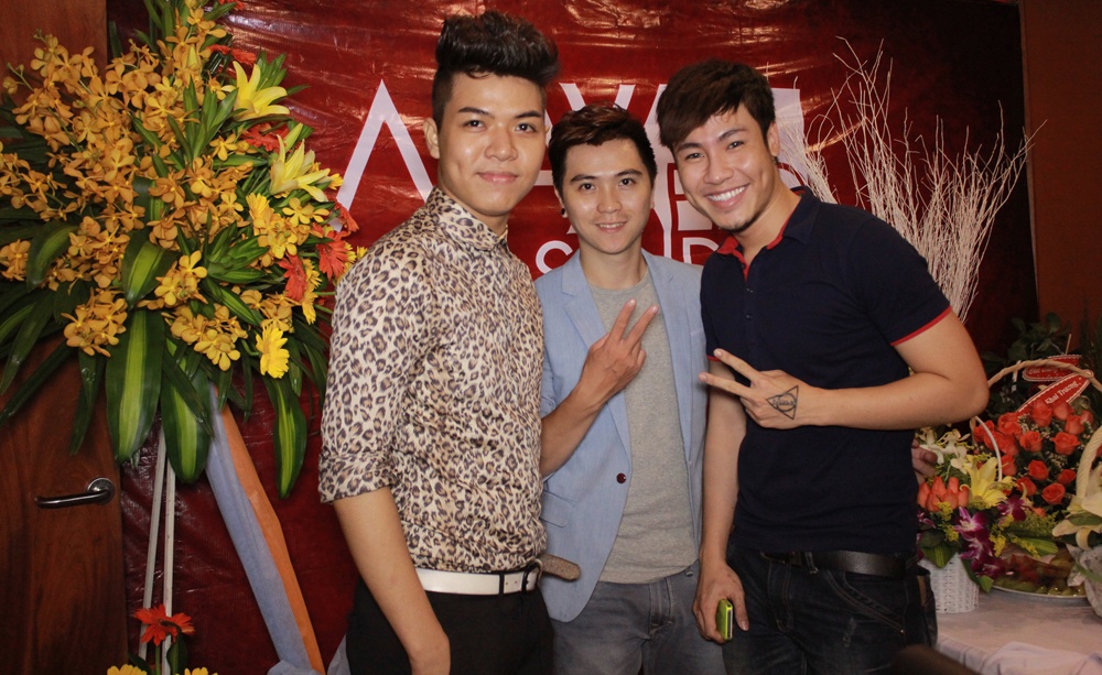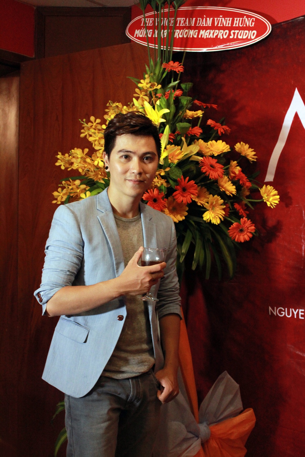 Nam ca sĩ và các thành viên trong nhóm "The Voice" đã dành thời gian đến chia vui cùng Phú Quý trong ngày khai trương phòng thu tại TP.HCM hôm nay.