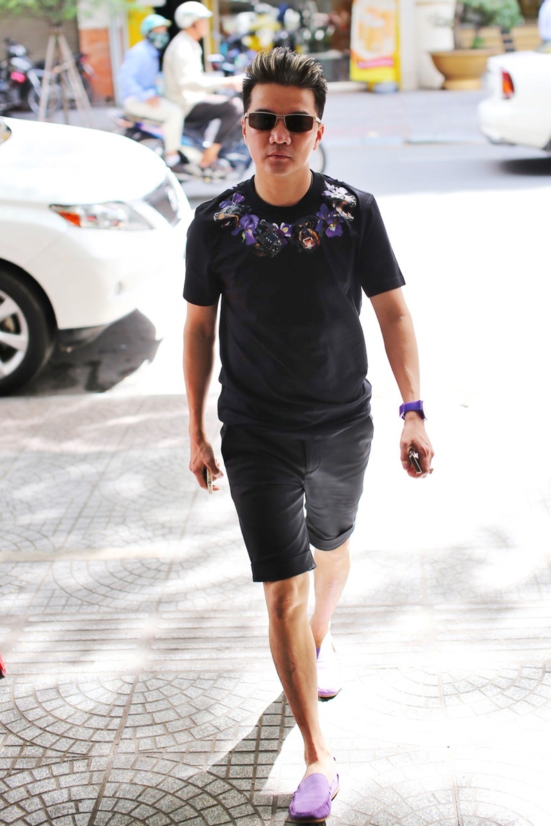 | Mặc dù chỉ là buổi tập nhạc nhưng “ông hoàng nhạc Việt” khá chăm chút vào phần ăn mặc, anh xuất hiện với bộ trang phục khỏe khoắn, bảnh bao. |