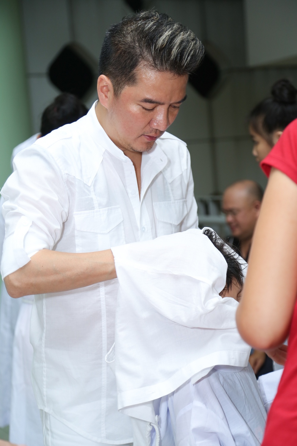 | Làm việc liên tục nhưng Mr. Đàm vẫn không quên quan tâm đến những thành viên nhỏ. Anh tự tay lau mồ hôi cho các bé. |