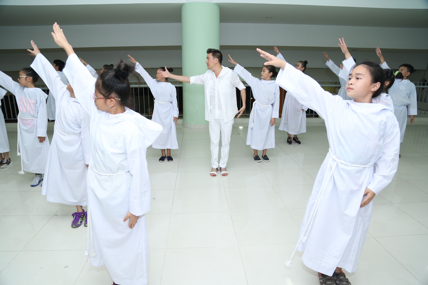 | Mr. Đàm hào hứng tập luyện cùng vũ đoàn nhí. Anh cho biết, mình là người nghiện công việc, khi đã làm việc thì bao nhiêu mệt mỏi đều biến mất. |