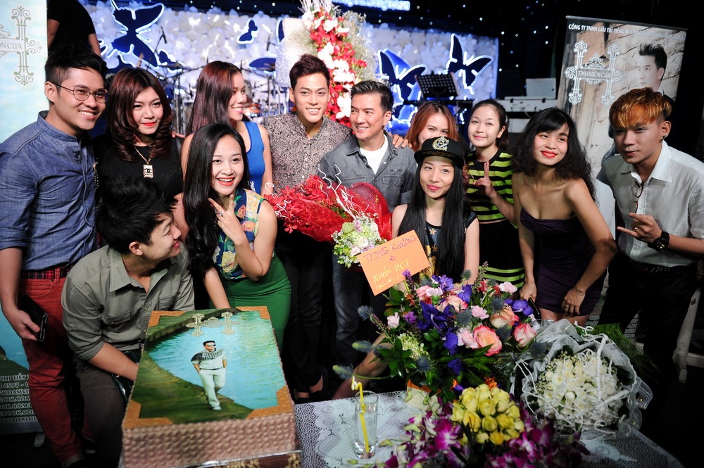Dàn thí sinh The Voice trong cả hai mùa đến chúc mừng thầy của mình.