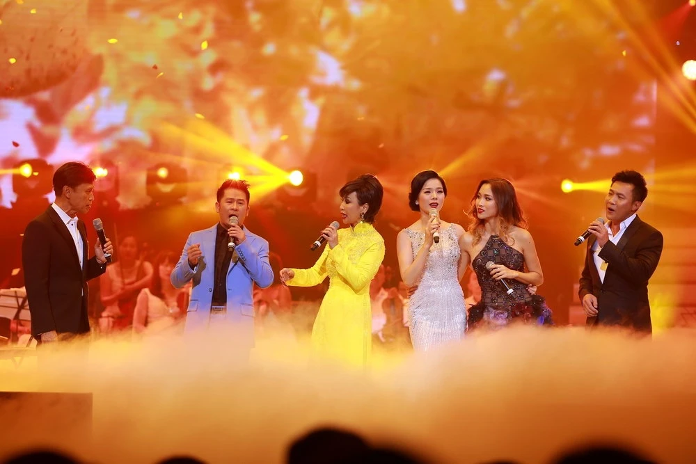| Sau những ca khúc nhạc quê hương của Quang Lê, Nguyễn Hưng hâm nóng khán phòng với phong cách sôi động cùng vũ đoàn. |