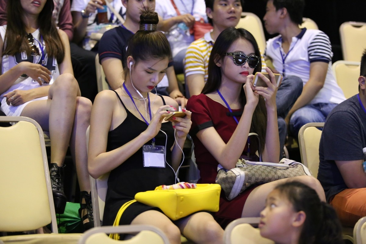Trong giờ giải lao, Kỳ Hân, Trương Mỹ Nhân bận rộn với những cuộc điện thoại.
