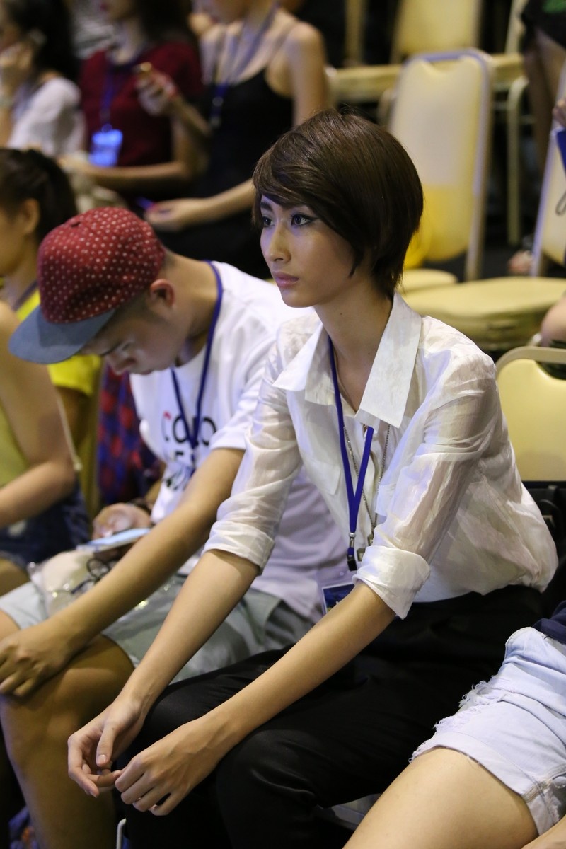 Chiều 19/4, dàn người mẫu chuyên nghiệp có mặt tại địa điểm tổ chức show diễn giới thiệu BST xuân hè 2014 - Biển nhớ để bắt đầu buổi tập luyện cho buổi ra mắt ngày 20/4. Cựu người mẫu Xuân Lan đảm nhận vai trò đạo diễn catwalk. Phía hậu trường, bà mẹ một con bận rộn với kịch bản chương trình.