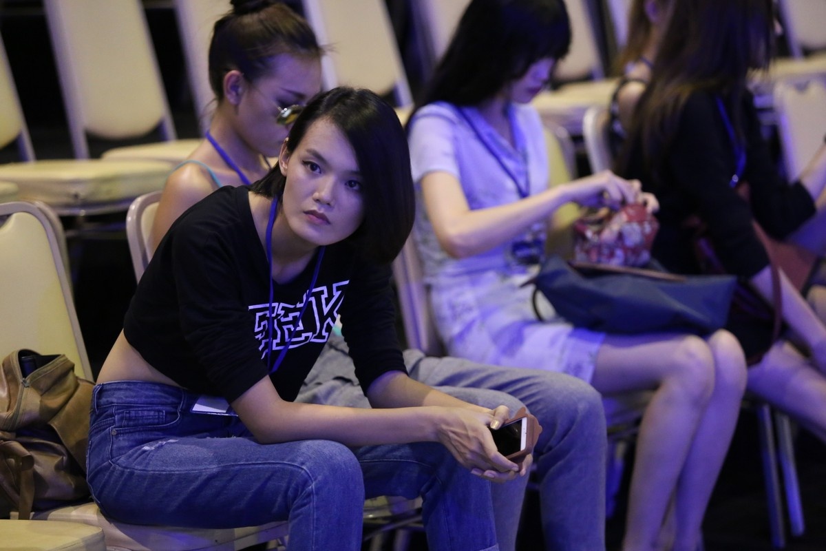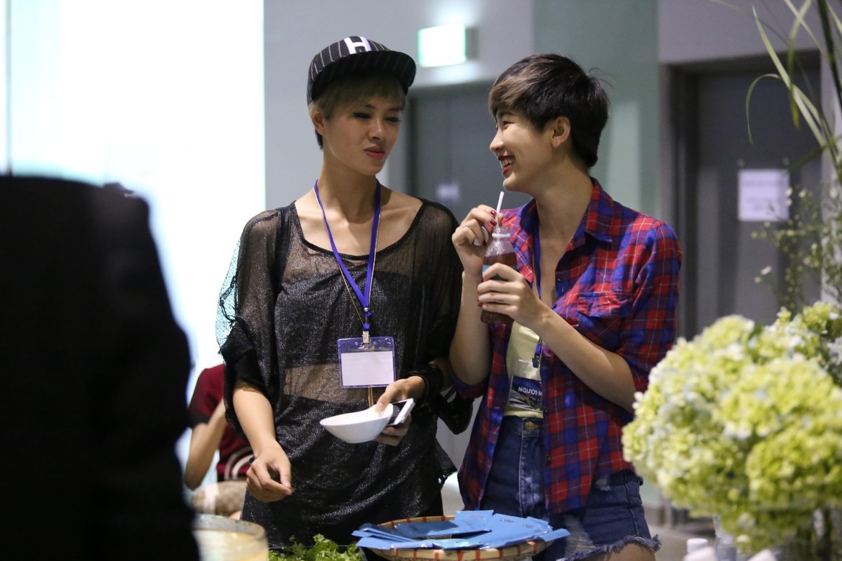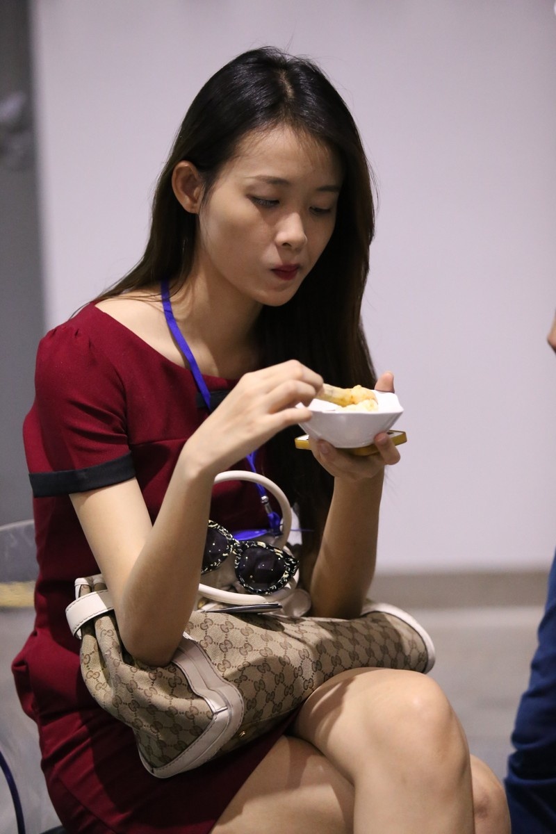Trong giờ giải lao, một số người mẫu tranh thủ dùng bữa chiều.