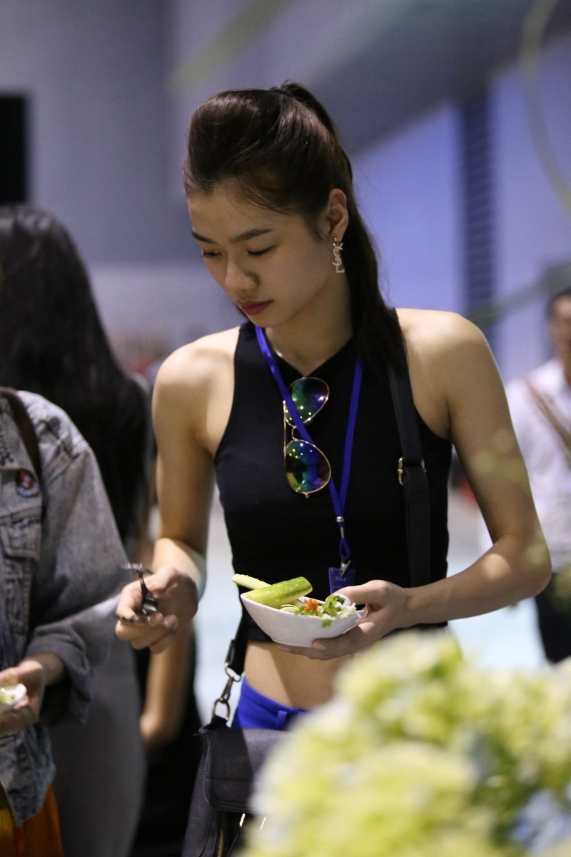Trương Mỹ Nhân dùng bữa nhẹ trước khi tiếp tục tập luyện.