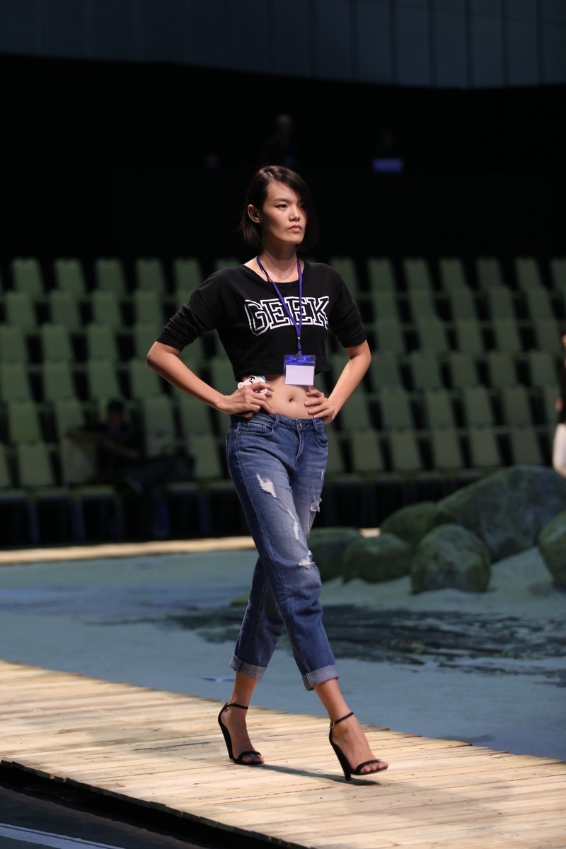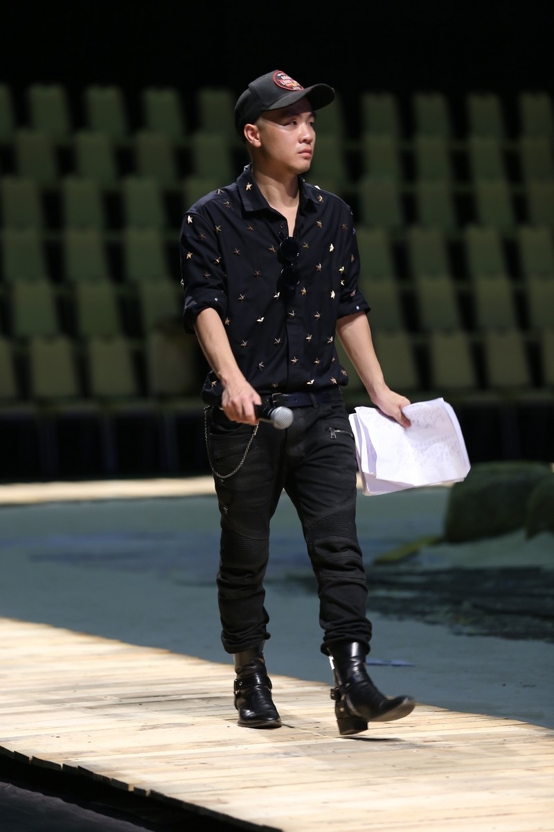 NTK Đỗ Mạnh Cương khá lo lắng cho show diễn Biển nhớ. Anh có mặt từ khá sớm để hỗ trợ Xuân Lan trong công tác sắp xếp dàn mẫu trên đường băng hình lục giác. Cựu giám khảo Vietnam's Next Top Model diện trang phục khỏe khoắn với sơ-mi họa tiết, quần jeans và đôi boots cổ ngắn cá tính.