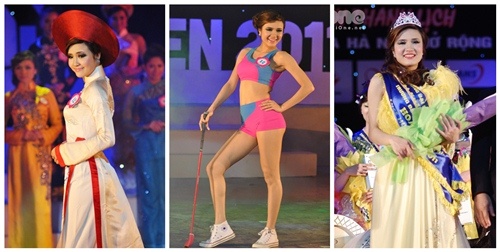 | Khánh Chi đăng quang Hoa khôi trường ĐH Văn hóa năm 2011. Những khoảnh khắc đẹp của cô trong cuộc thi thể hiện nét hiện đại, năng động của phụ nữ thế kỷ 21. |