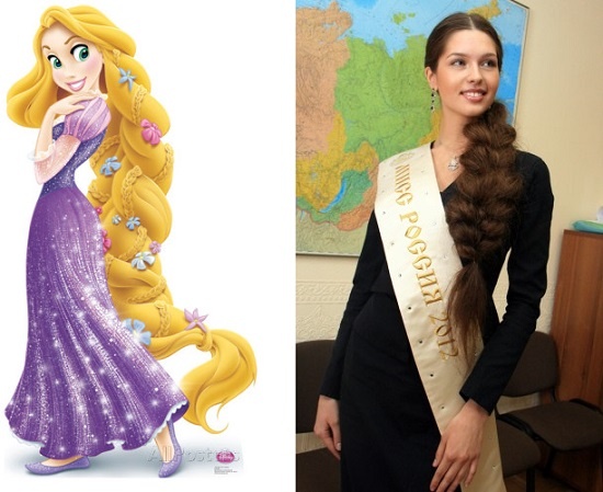 Hoa hậu Nga 2012 sở hữu mái tóc dài bồng bềnh không kém nàng công chúa tóc mây Rapunzel. |