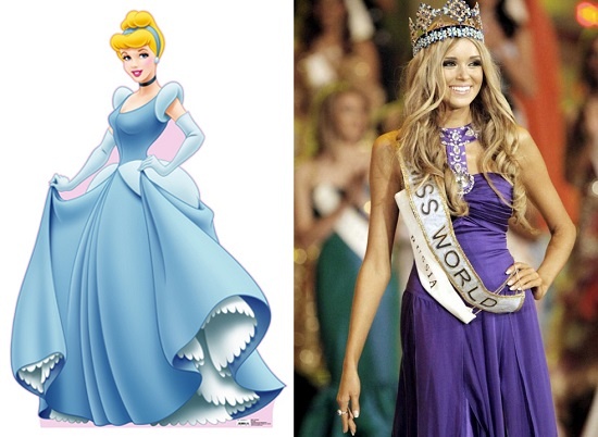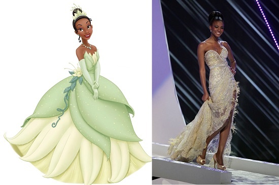 Hoa hậu Hoàn Vũ da màu Leila Lopes trông như chị em sinh đôi với nàng công chúa Tiana. |