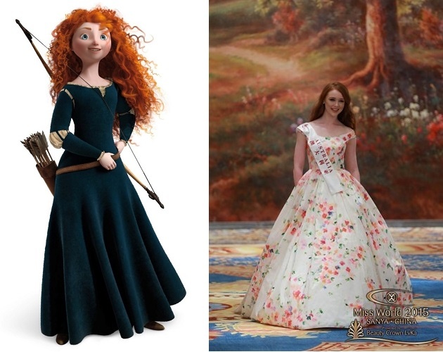 Hoa hậu Australia 2015 Tess Alexander sở hữu mái tóc nâu đỏ cùng gương mặt tròn trĩnh đáng yêu như công chúa tóc xù Merida. |