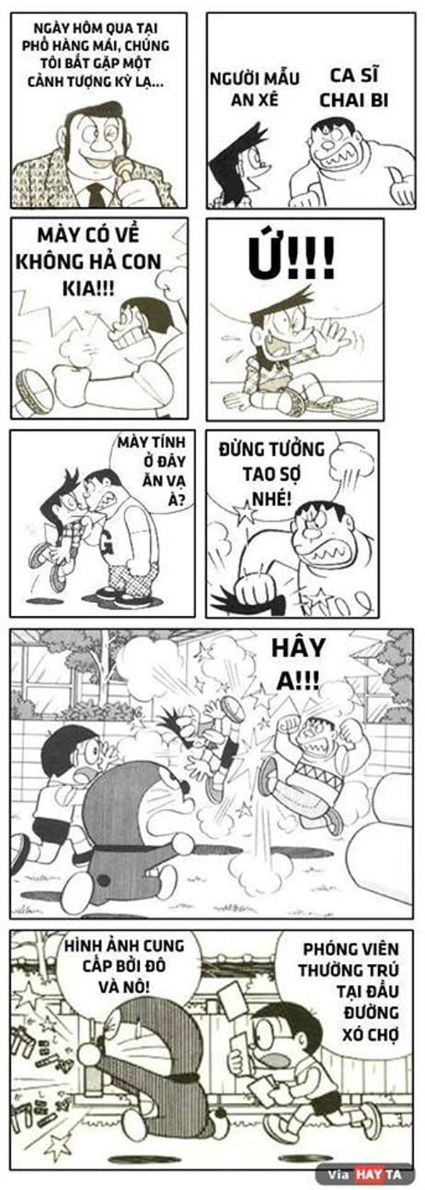 | Chuyện xô xát của Andera và Yabi còn được chế Doremon. |