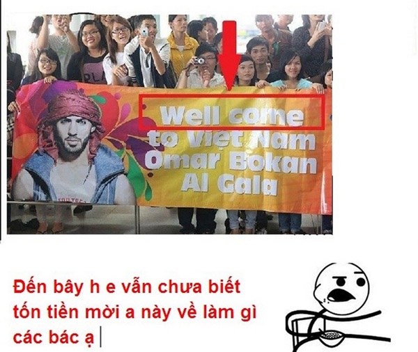 | Dòng chữ viết sai chính tả của bạn trẻ Việt khi chào đón Omar khiến nhiều người "chướng mắt" đặt ra câu hỏi "Anh chàng này đến Việt Nam để làm gì?". |