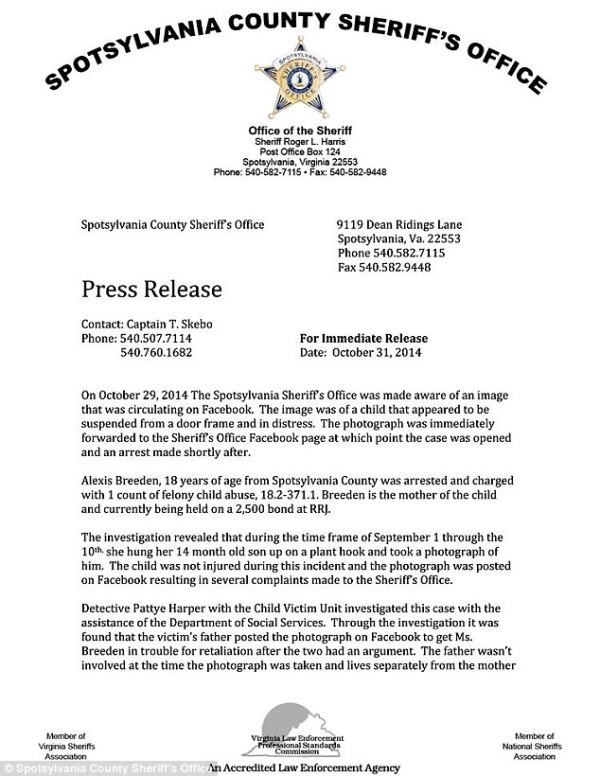 Cô gái này có tên Alexis Breeden, đến từ Spotsylvania County, Virginia. Dù mới 18 tuổi nhưng Alexis đã là mẹ của một cậu bé 14 tháng. Đặc biệt, nạn nhân của vụ việc không ai khác chính là con trai cô.