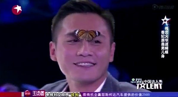 Các khán giả hâm mộ bộ phim truyền hình nổi tiếng Hoàn Châu cách cách mới đây đã được sống lại những giây phút đầy cảm xúc trong chương trình China's Got Talent 2013. Một nam thí sinh đã gây bất ngờ khi hóa trang thành nhân vật Hàm Hương và múa cùng những chú bướm thật ngay trên sân khấu.