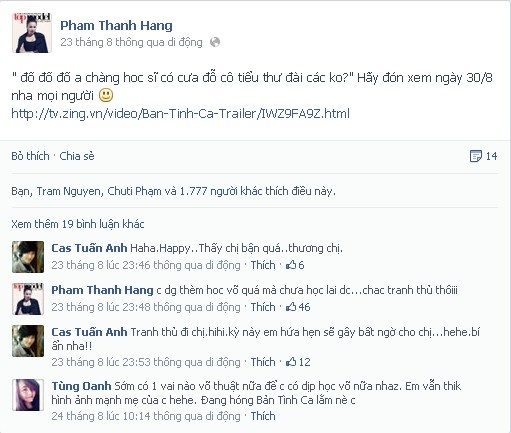 Chỉ một thời gian ngắn sau khi chia sẻ đoạn trailer này, Thanh Hằng và Trấn Thành nhận được hàng ngàn lượt “like” và vô số bình luận từ người hâm mộ. Hầu hết các fan cuồng của cặp đôi nghệ sĩ này không tiếc lời khen ngợi thần tượng. Có fan còn hy vọng họ sẽ… “nên đôi” trong thời gian tới.
