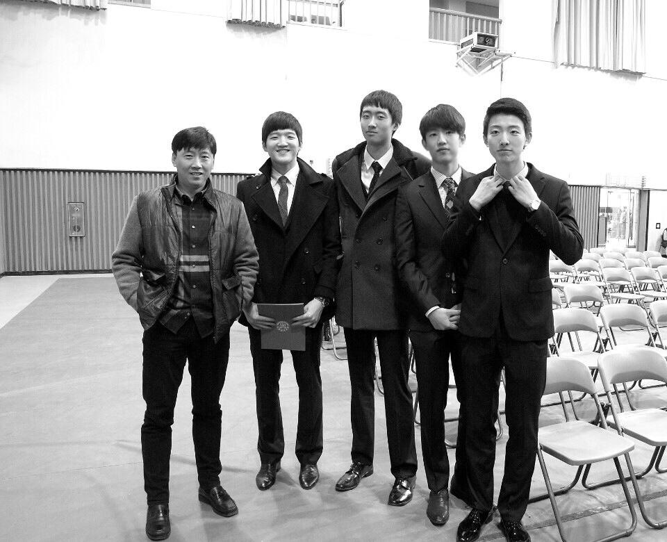 | Park Song Soo (thứ 2 từ phải qua) khá nổi bật trong một bức hình chụp chung với bạn bè. |