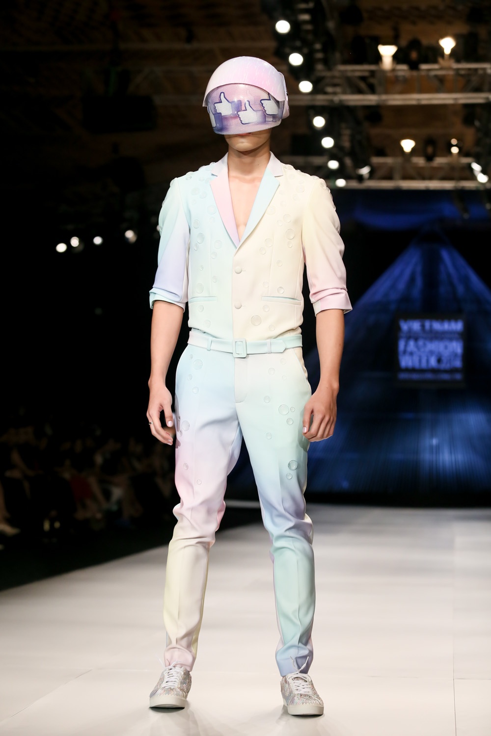 Trang phục dành cho nam có phong cách lịch lãm, trẻ trung. BST hướng đến ý tưởng hư thực nhưng lại chứa những chi tiết ứng dụng cao, phù hợp xu thế thời đại.
