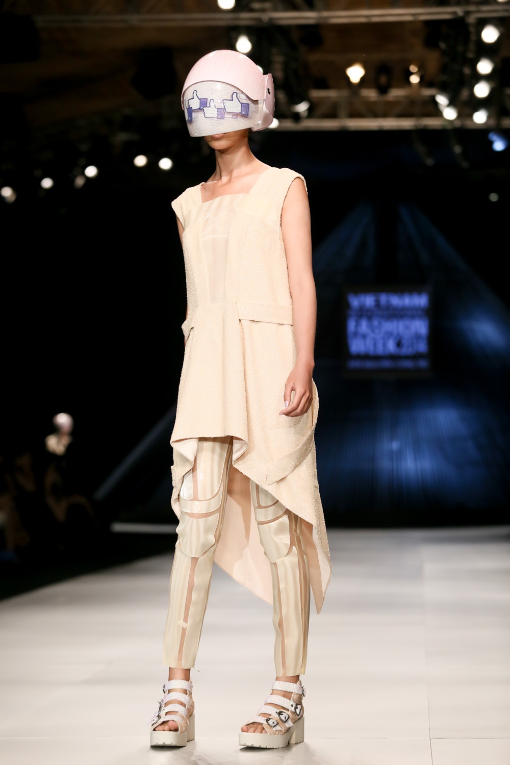 Mâu Thanh Thủy là người mẫu duy nhất không đội mũ bảo hiểm ở show diễn này, các người mẫu nối tiếp đều được trang bị những chiếc mũ bảo hiểm cách điệu với nhiều kiểu dáng, họa tiết nhưng thống nhất về tông màu.