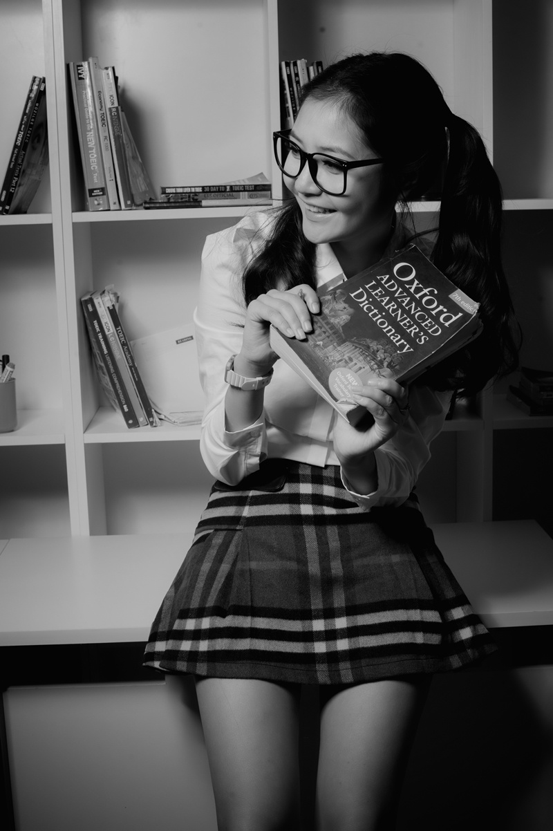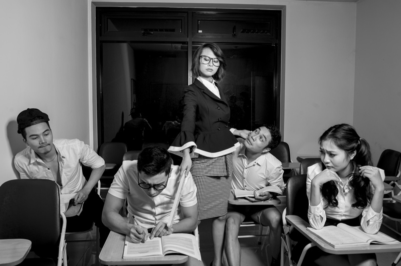 | Kim Thoa - cô nàng cá tính mạnh mẽ nhất của Vietnam’s Next Top Model sắm vai một cô giáo đối lập hoàn toàn với Hà Thu. Trong bộ ảnh, Kim Thoa xây dựng hình ảnh nữ tính và mềm mại, khác với hình tượng cá tính, mạnh mẽ ở sân chơi Next Top Model. Hình ảnh lạ mắt giúp Kim Thoa nổi bật hơn hẳn. |