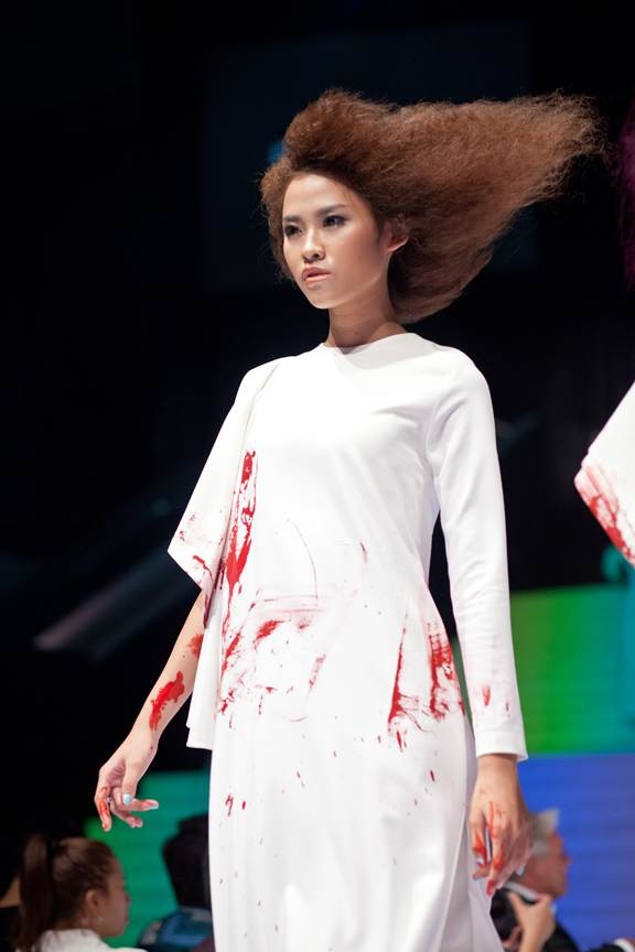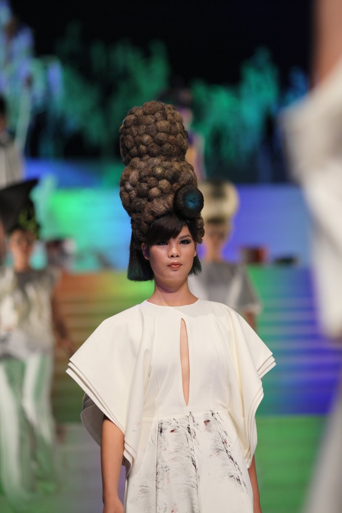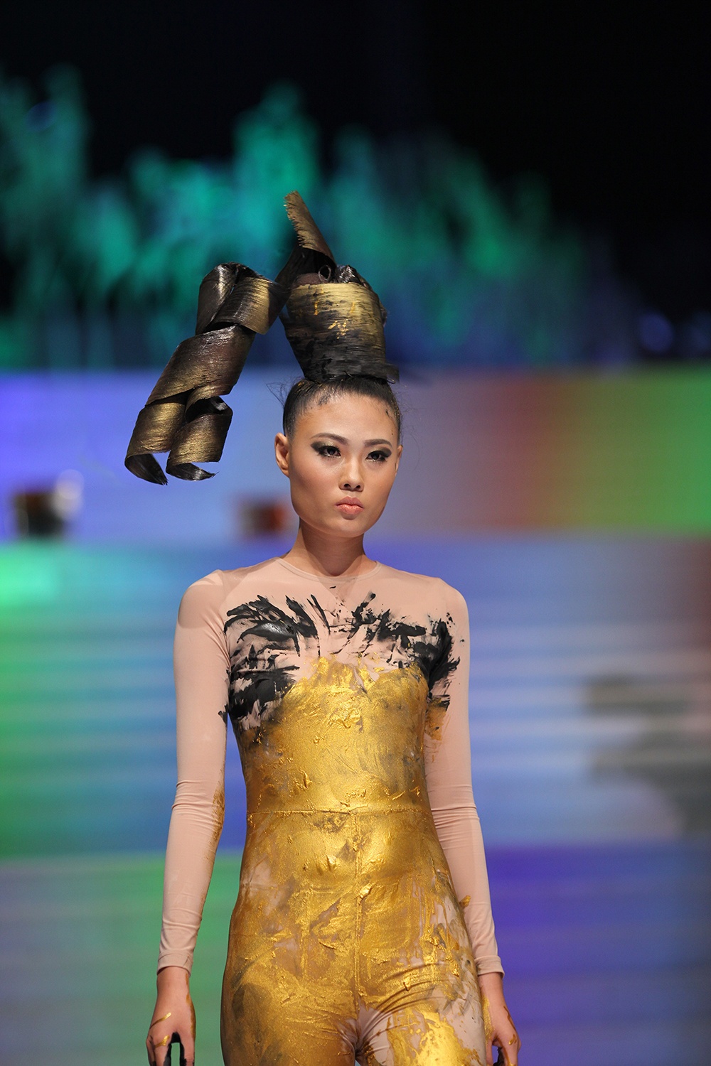 | Hải Phượng - Miss Sunplay 2013 trình diễn trong Họa Tình (Goldwell). |
