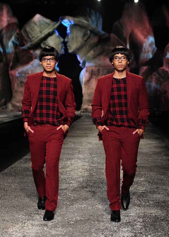 | Không kém cạnh các cặp song sinh nữ, những bộ đôi nam cũng cho thấy sự thành thạo của mình khi catwalk. |