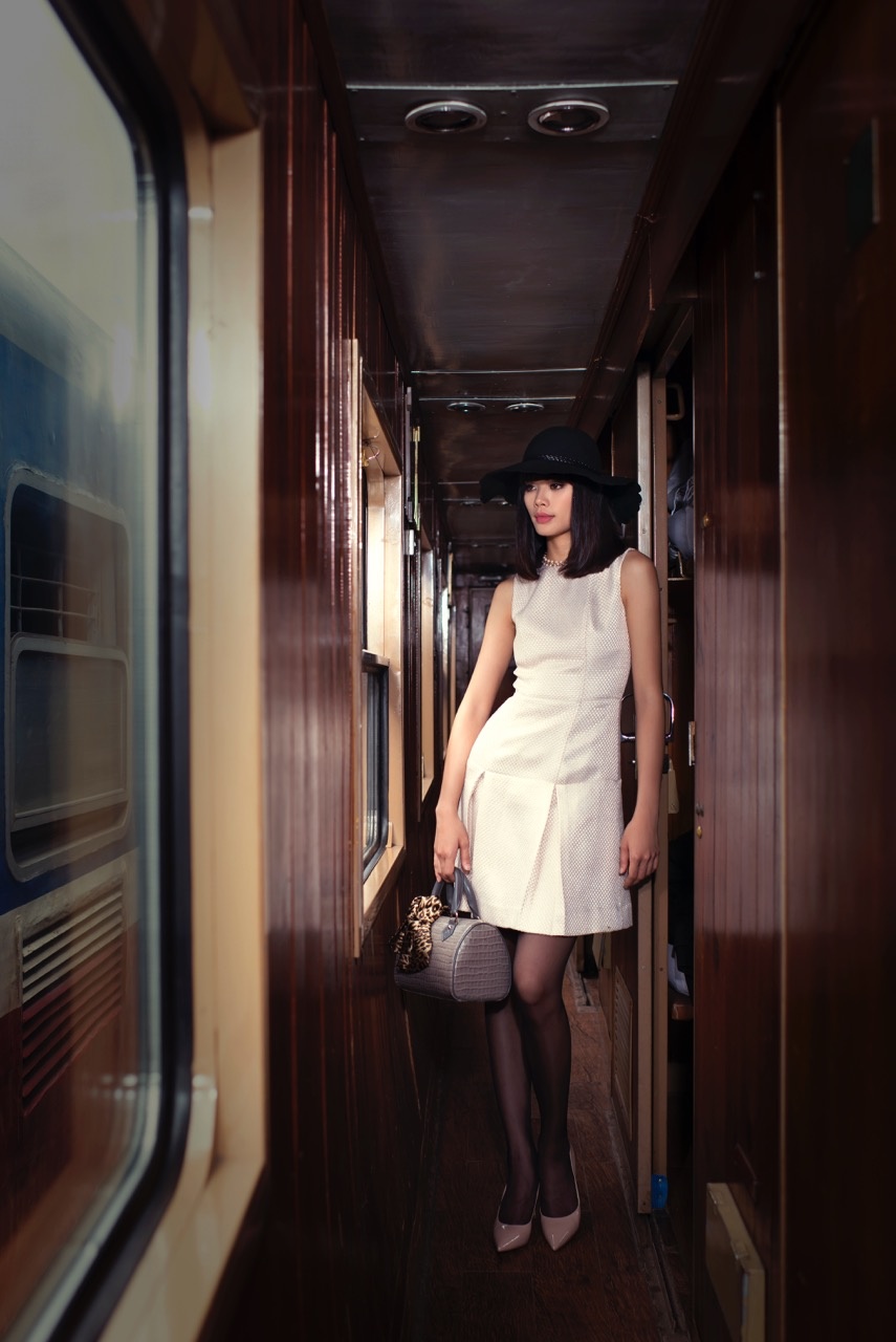 | Thu Hiền trong một toa tàu sang trọng dành cho khách VIP. |