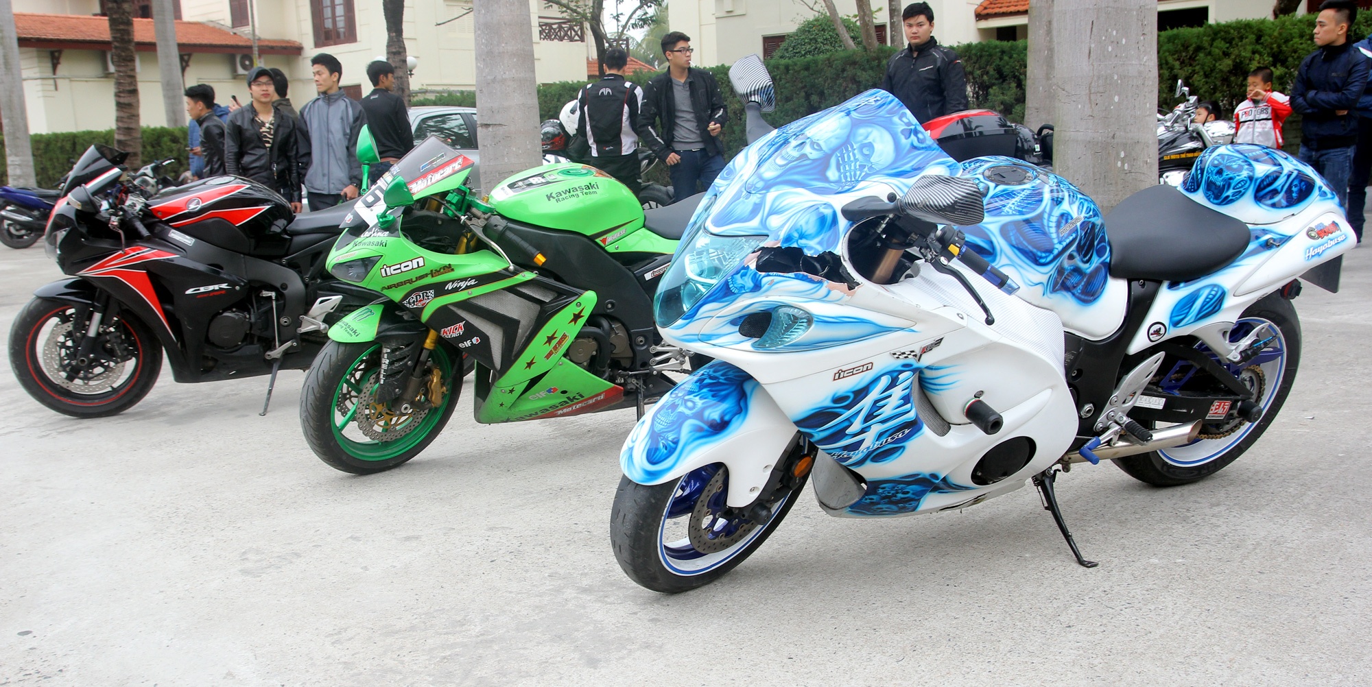 | Bộ ba Suzuki Hayabusa, Kawasaki ZX-10R và Honda CBR1000. |