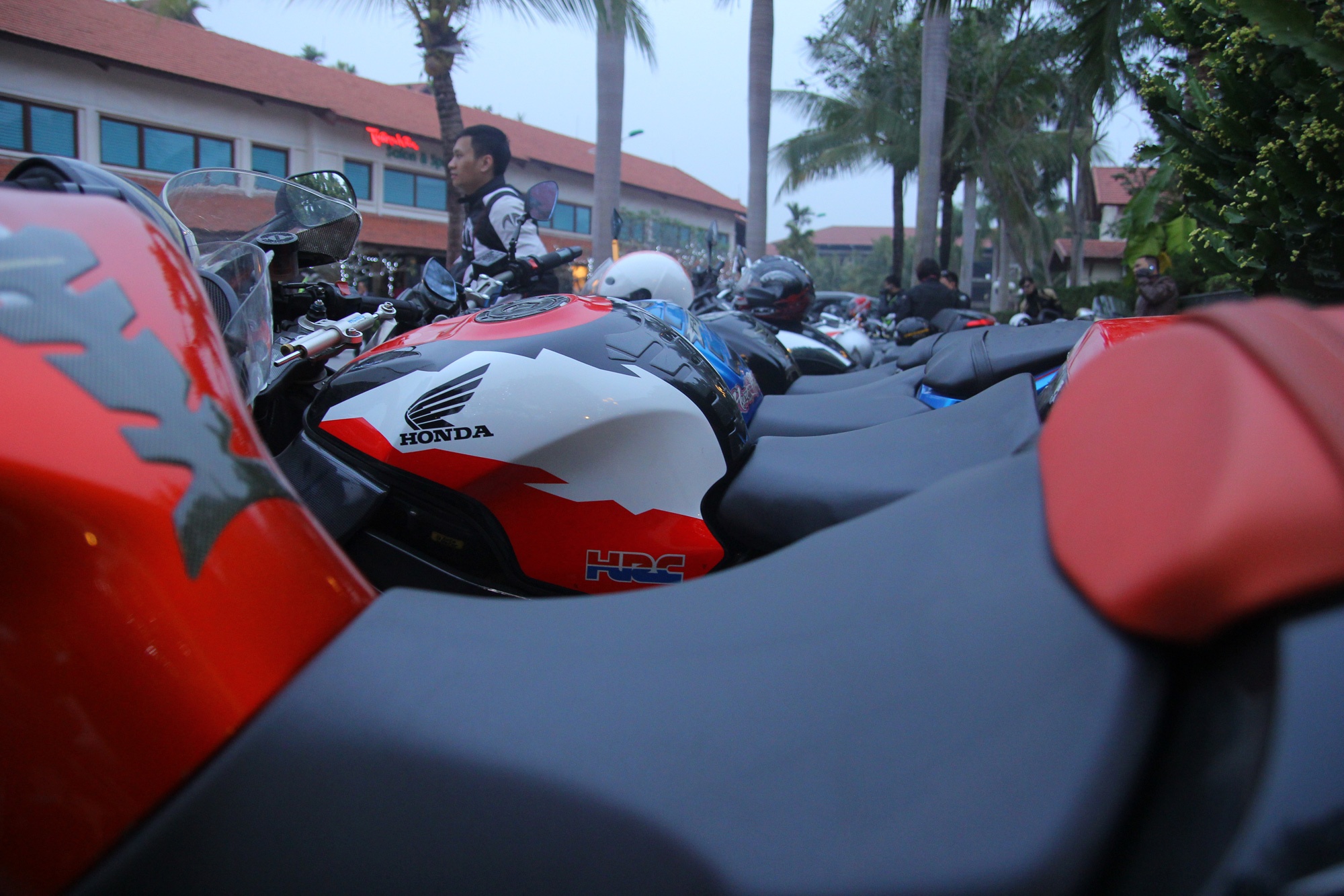 | Honda Goldwing 1800cc, Kawasaki Concours 14, Honda VTX 1300, VTX 1800 và Honda CBR600 thuộc sở hữu của các thành viên câu lạc bộ mô tô Hải Phòng. |