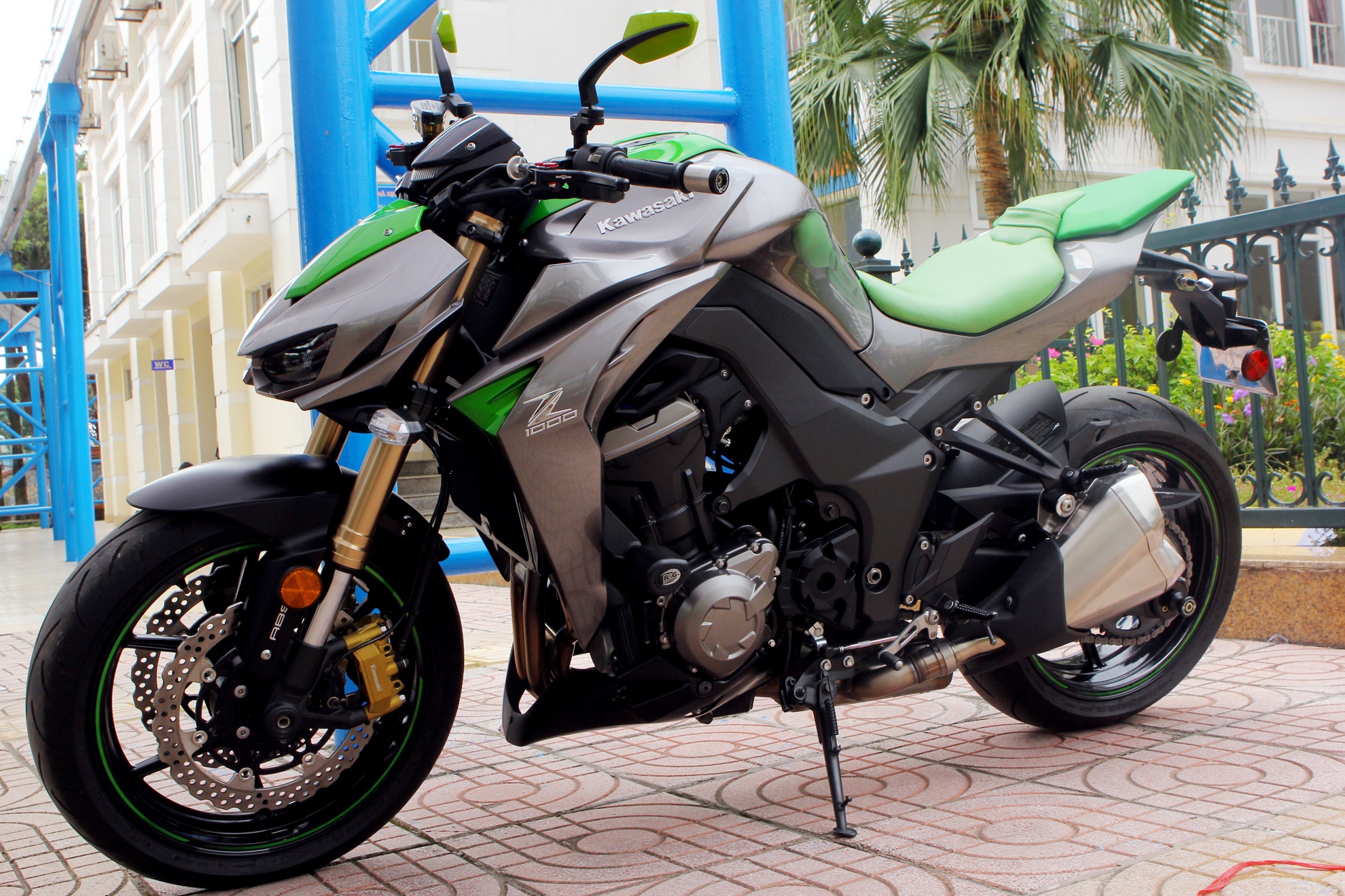 | Kawasaki Z1000 với màu xanh lá đặc trưng. |