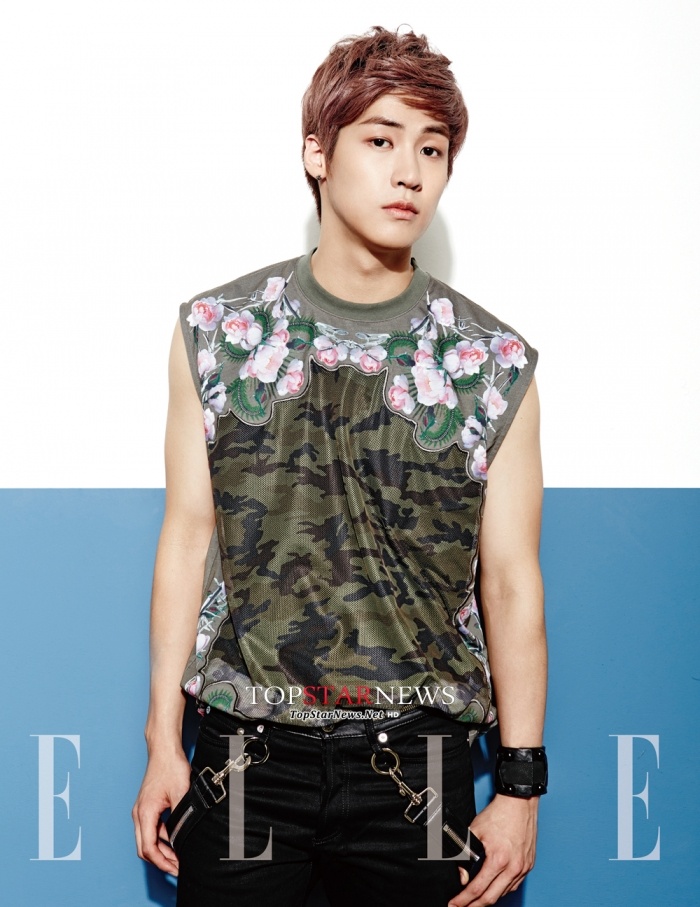 | Áo top với rằn ri kết hợp với họa tiết là dàn hoa trên phần thân giúp trang phục của thành viên Lee Seung Hyub nhóm N.Flying thêm phần ấn tượng và nam tính. |