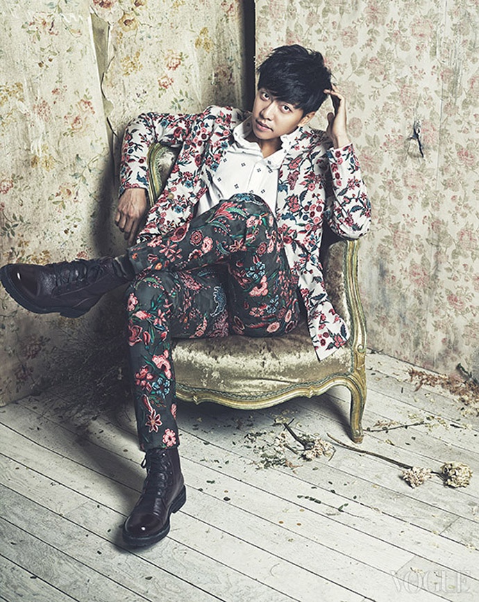 | Bạn trai của Yoona (SNSD) vốn quen thuộc với phong cách đơn giản. Nhưng tạp chí Vogue Hàn Quốc đầu năm nay – Lee Seung Gi sành điệu và mới mẻ hơn khi khoác lên người bộ đồ “cây” họa tiết hoa vintage được phối trên nền màu đối lập trắng đen. |