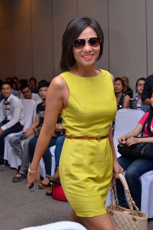 | Màu xanh lá mạ giúp Thu Minh trở nên trẻ trung. |