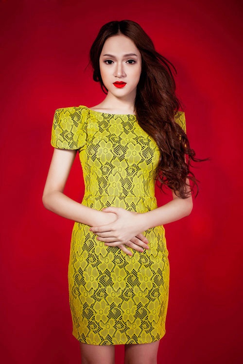 | Tông màu giúp Hương Giang ghi điểm nhờ vẻ dịu dàng. |