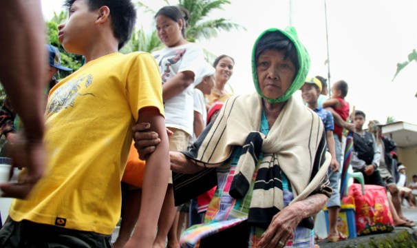 | Người dân ở Legazpi sơ tán ngày 7/11 trước khi siêu bão Haiyan đổ bộ vào Philippines. Chính quyền những nơi cơn bão có thể đi qua đã di dời hàng chục nghìn dân tới những nơi an toàn. Ảnh: AFP. |